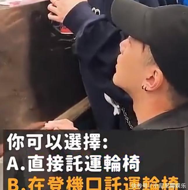 郑智化原本就没打算轮椅进飞机,所以没换窄的轮椅,但没想到会有一个高度台阶,有点生气